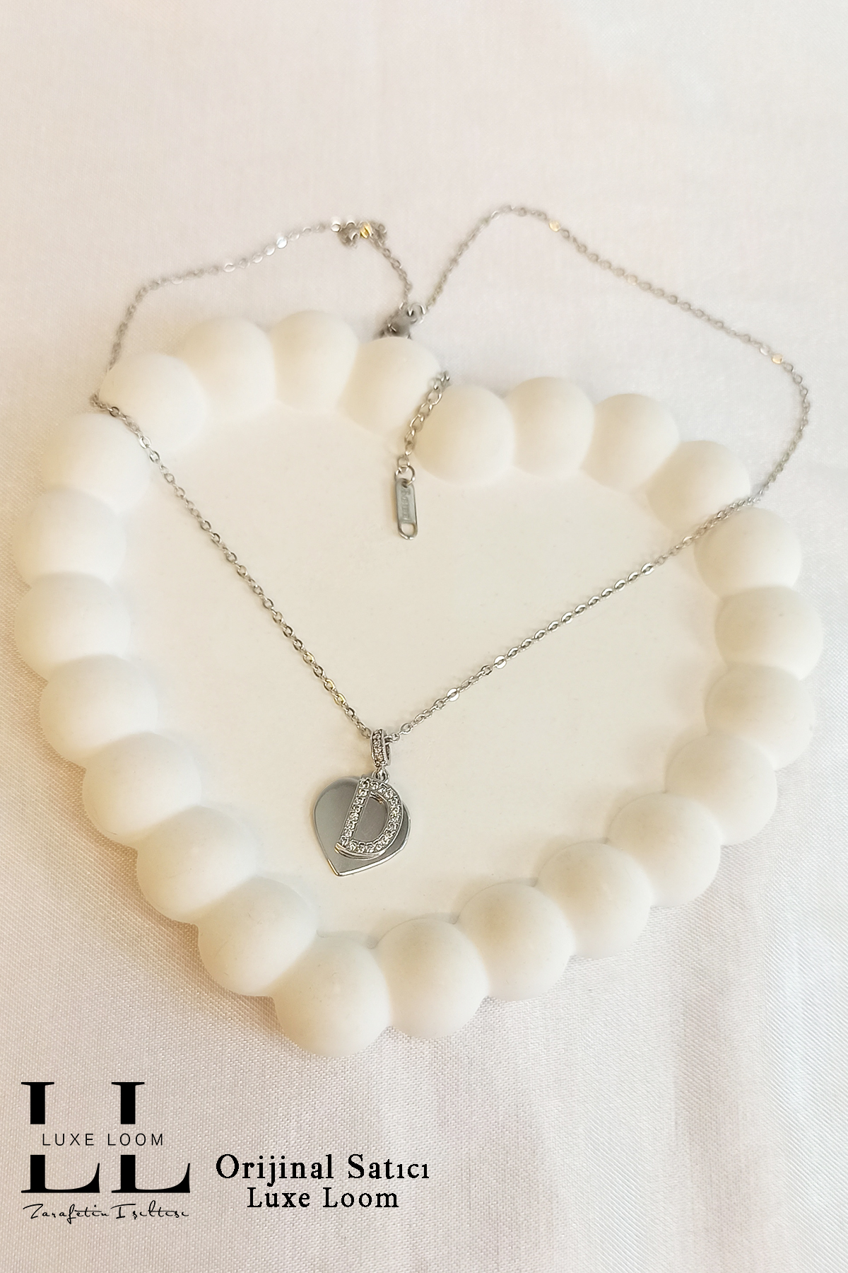 Kalbin üzerine yerleştirilmiş zarif "D" harfi, kişiselleştirilmiş ve anlam dolu bir dokunuş katıyor.